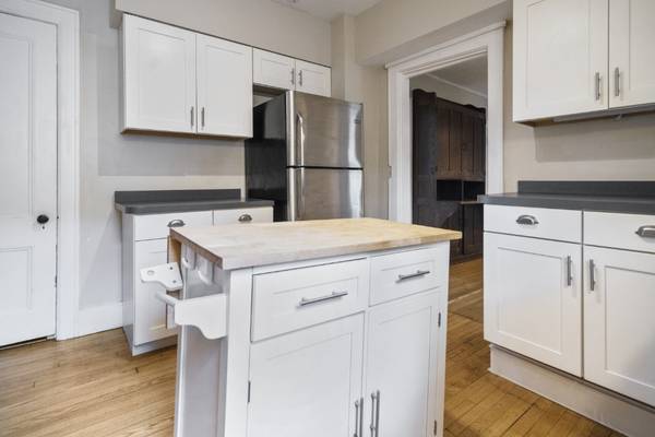 Built in 1870, the home interior has been remodeled and modernized. Updates include: light fixtures, drapes, water heaters, boiler, washer/dryer within the unit, dishwasher, gas stove, refrigerator, radiator heating, original hardwood flooring, air conditioning in the Master Bedroom, remodeled Kitchen, large windows flood the home with natural light. The fenced-in yard is dog and cat friendly.