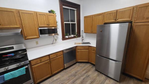 Bright, airy & renovated 2BR/1BA apartment with high-end finishes in an impeccably maintained, award-winning Victorian house. This spacious apartment combines historical charm with modern features. Light from all 4 exposures, perfect for Ithaca's grey days! Large windows, private patio, and private off-street parking. The floorplan includes a living room, formal dining room, large kitchen, and tons of storage. Steps to bus stop, Carshare & Commons. Minutes to Cornell: 5 by bus, 15 on foot.