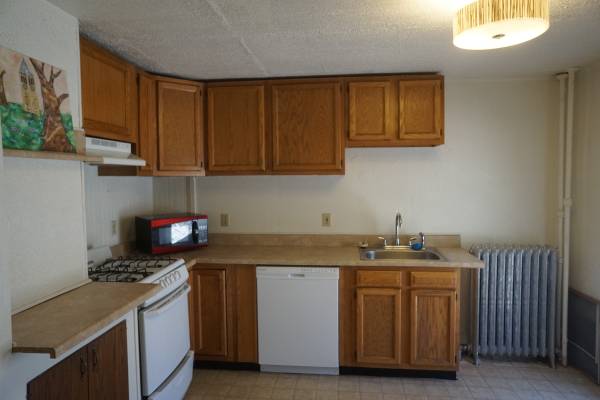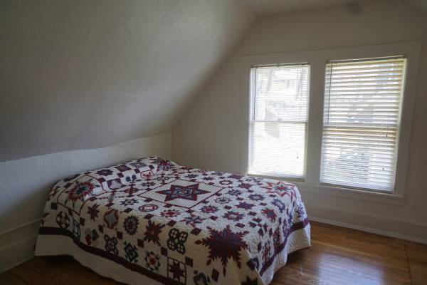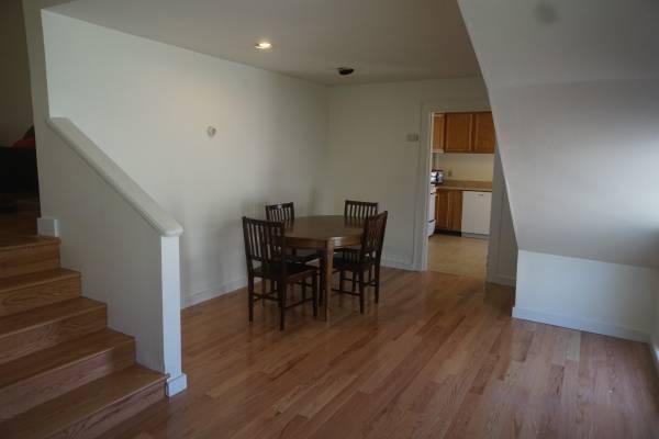 Spacious 4BR with a unique layout! Hardwoods throughout. Lots of shared living space with den, dining room, living room and two full bathrooms. Workable kitchen with dishwasher and full-size stove/oven. Skylights in second-floor living room and bathroom let in extra light.