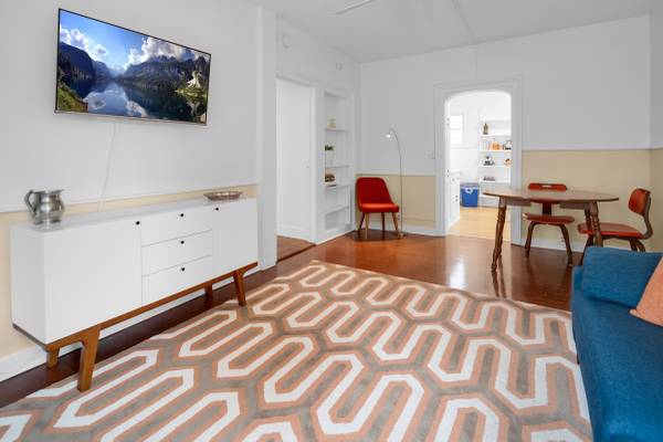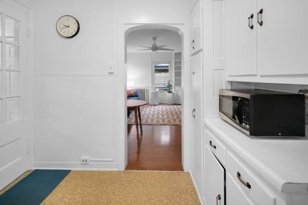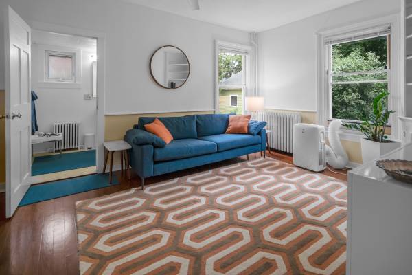Bright and modernly furnished one-bedroom, one-bath apartment located in a well-maintained downtown building. This fully equipped unit includes everything you need to live comfortably—from furniture and linens to kitchen essentials. The bathroom has been freshly renovated, and the apartment features a full kitchen, central heat, and a portable AC unit (stored during winter).