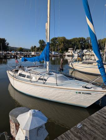 This is a solid and well maintained Catalina 27 with 14 HP Universal diesel. Sails in great condition, engine runs great. New foresail furler, rigged to sail from the helm, it can be sailed single handed. Yes it is 40+yrs old but still a solid option to get out on the water. Currently in winter storage in Ithaca NY. More pics available on request.