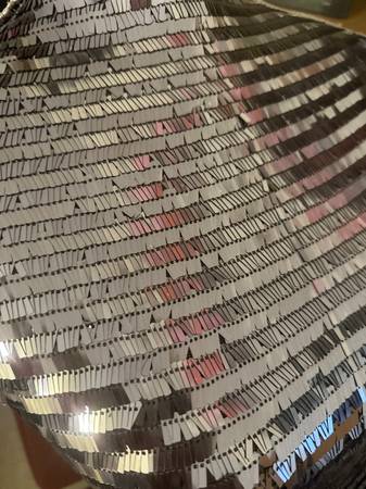 For sale: Gray Sequins Dress Form with Gray Trim Has Wooden Head Does not have stem/base - but fits one if you have it it, screw is included.
