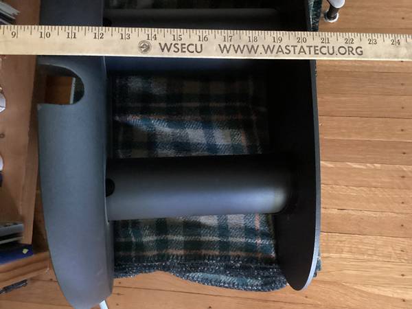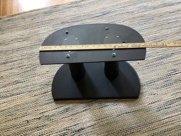 The center speaker stand, made for B&W Nautilus center speaker. Extremely high quality to me, very heavy (30lbs?) with plastic inserts adding an angle of 6 degrees. It is assembled with those inserts. I have trouble to disassemble it because of one bolt which does not allow a secure engagement of a wrench. I used it for 40lbs ATC center speaker. See dimensions on the photos. Spikes are also included and add about an inch in height. Very nice condition. Very nice looking.