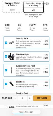 Barely rode on only 8 miles. It’s the bright blue color and has the 4 accessories shown on the website (Seat post, light, bike lock, and phone mount). Fully assembled with thr upgraded 750w motor meaning 28mph and 90 miles of range. Removable battery that can be charged outside of bike. Has pedal assist and standalone throttle control. Also have an e-scooter for sale if you’re interested.