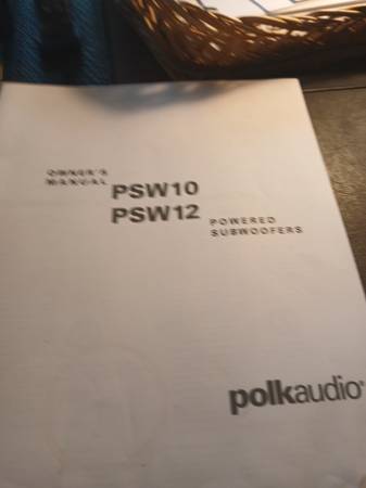 Bose series 201-V, 6.5" woofer, 2" tweeter, cost $219 at Best Buy. Polk Audio powered subwoofer, model PSW-10.