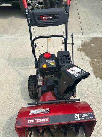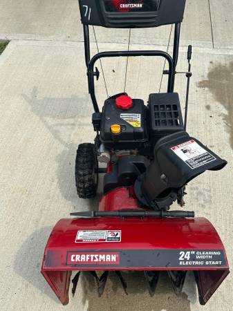 I have a nice used Craftsman 24" 179cc OHV by Briggs & Stratton Two-Stage Snow Blower. Come try it out runs amazing pulls starts on first try and has convenient electric start below is the information about it and similar one at Lowes cost $999.00 plus tax totaling $1068.93 ONLY asking $500 selling because we got a tractor with back blade so no need for the blower Have video of it running.