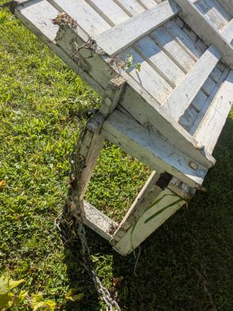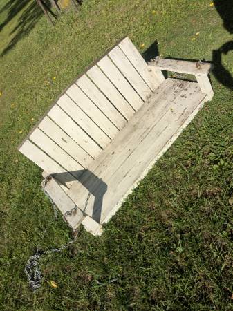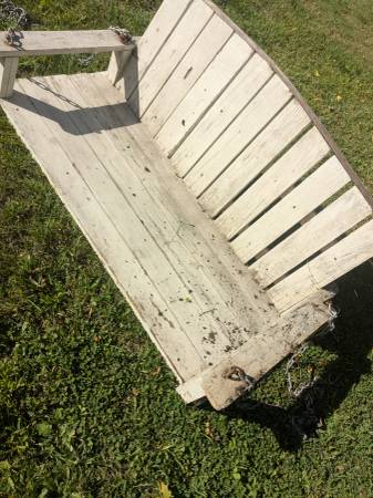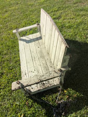 This is a awesome vintage wooden porch swing with all the hardware attached.4' long and 2' ft wide.