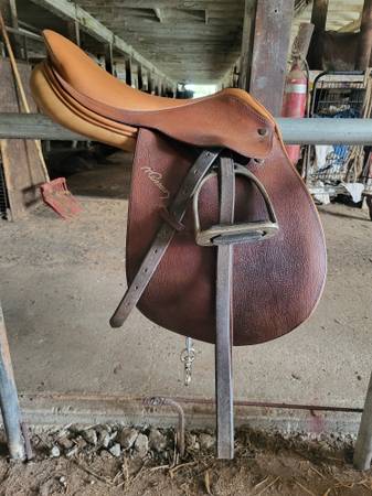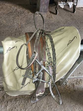 Older close contact Pessoa saddle, 16½" seat and med. narrow tree. Comes as a set with a 48" Pessoa girth, horse size Pessoa bridle and a Pessoa breastcollar that needs repair. Not in perfect condition, but is in good condition for its age and many years of use left. Its just sitting around and collecting dust as I no longer have horses and I'd love for it to go somewhere to be used and cared for. Accepting reasonable offers. Three15-two46-zero198
