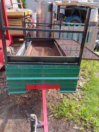 I've got a big cooker. It's kids friendly with air gap between fire box and sides. It's 20x55 cooking area. It's on wheels and can be towed with garden tractor or 4 wheelers. Set up so you can slid the cooking grate off to either side . Can use charcoal or wood brackets or wood.
