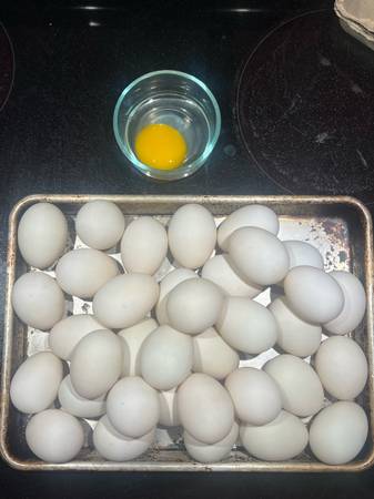 They are fed organic feed, organic peas, meal worms, and all the outdoor foraging. They have access to fresh & clean water all the time, they are happy ducks. Their names are Pookie, Mookie, Sookie, and Wookie.
