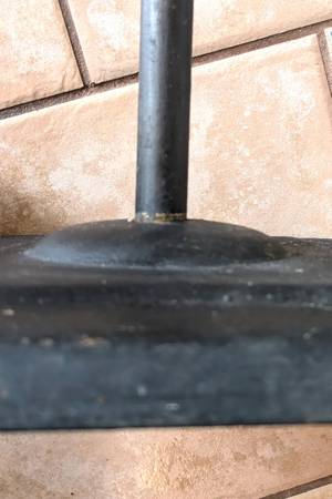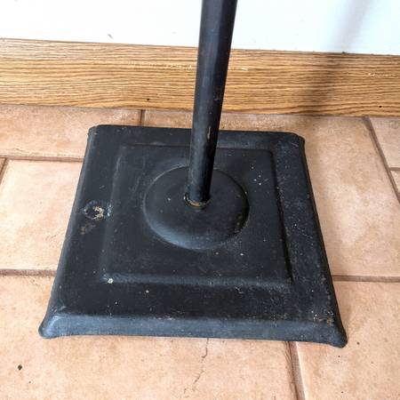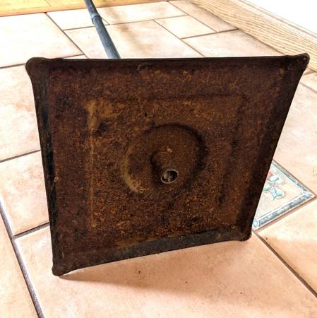 Please note that this stand is in need of TLC – the stem is not securely affixed to the base, so it is quite wobbly. There is some wear to the paint, rust, etc. as well. This is being sold AS IS.