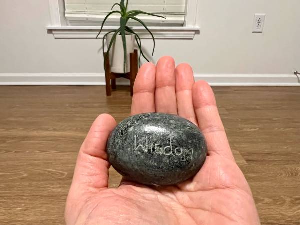 Lovely little polished stone reminding you of the importance of “wisdom”—great as a paperweight or just decor.