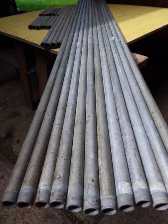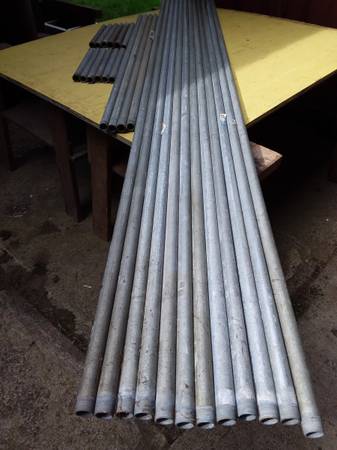 Rigid Steel Conduit, 1" OD, 3/4" ID, threaded at one end. Heavy enough for building, monkey bars, shelving, closet hangar-bars, etc. 12 pcs. 8' 10" ($12.00 each), 12 pcs. 1' ($1.00 each), 12 pcs. 3'-5' ($5.00 each). Also have some bases, joints and caps. Prices OBO. Cash only, please. Phone or text for quickest response.