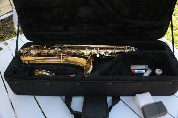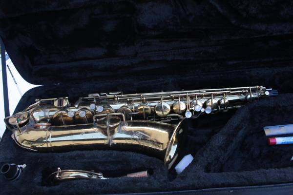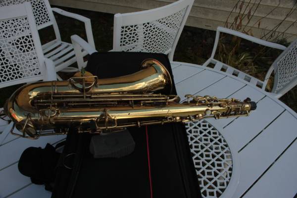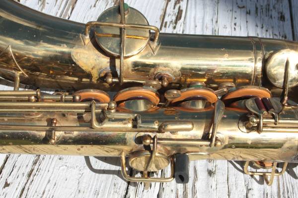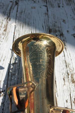 Wurlitzer marketed stencil C-Melody saxophones made by Beuscher, Conn, and Martin. This one is most probably a Beuscher. It was tuned and regulated about two years ago and has been played very little since then. Pads are in excellent condition. No dents or noticeable scratches; lacquer is about 70%. Neck is in excellent condition and was recorked during the tune-up. Plays well with the included C-Melody mouthpiece (labeled France on one side and 3 on the other) and two-screw ligature; mouthpiece is in excellent condition with no chips or scratches. Comes in a hard-shell case that's in like-new condition.