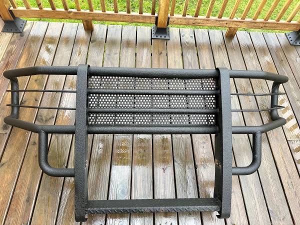 "step plate" that allows easy access to the hood and engine. This one-piece, fully welded application provides maximum front end protection for the headlight and grille areas of your truck or SUV. The Ultimate Armor coating is abrasion resistant, weather tolerant, and flexible. The Ultimate Armor Rancher Grille Guard is backed by a three year warranty on workmanship and materials, and finish (Excluding Fading) Parts are proudly made in the USA.