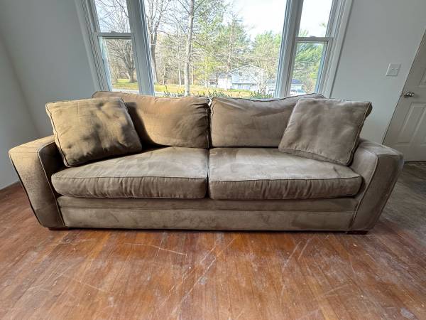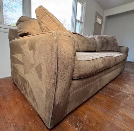 Doing some remodeling and need to get this couch out of the way ASAP. It’s in decent shape overall but the upholstery has been scratched up the corners by a cat, has just been steamed cleaned.