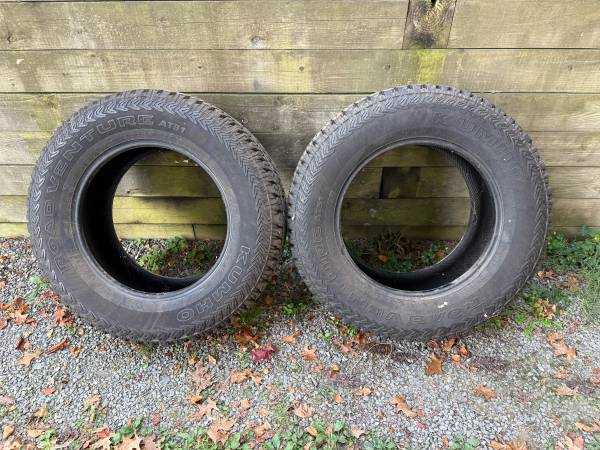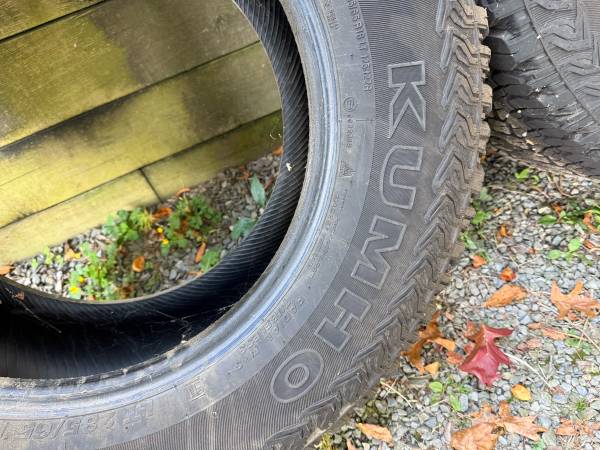 2 free tires, good condition and plenty of tread left. Vehicle was rear ended and slashed back tires. They’re Kumho Road Venture AT51, Size 285/65 R18.